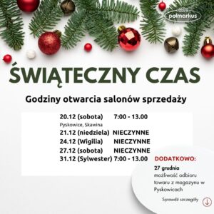 Świąteczny czas – godziny otwarcia salonów sprzedaży